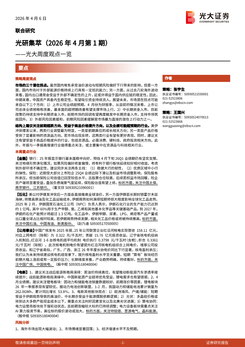 光大证券-周度观点一览:光研集萃(2026年4月第1期)-260406
