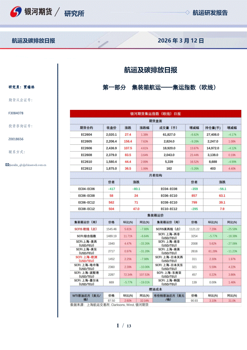 银河期货-集运指数(欧线)月报:美伊局势悬而未决,节后欧线进入传统淡季-260226