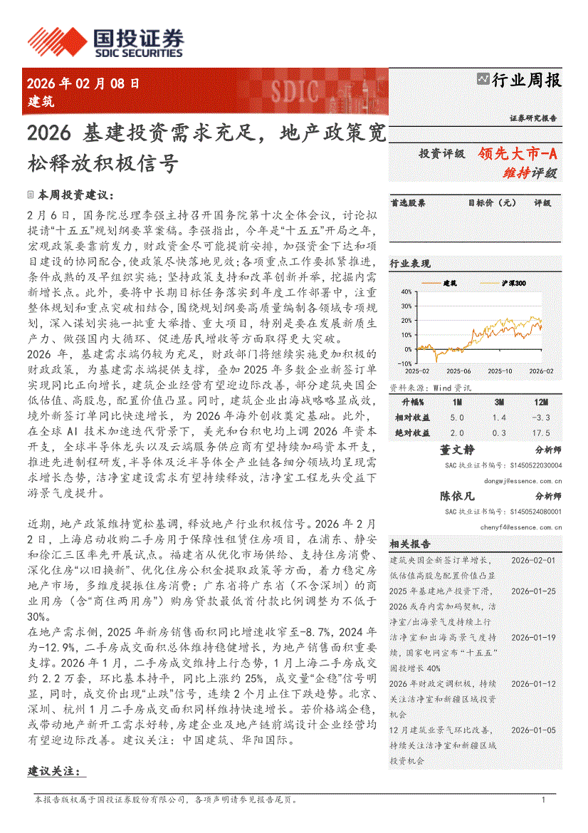 建筑行业:国投证券-建筑行业周报:2026基建投资需求充足,地产政策宽松释放积极信号-260208