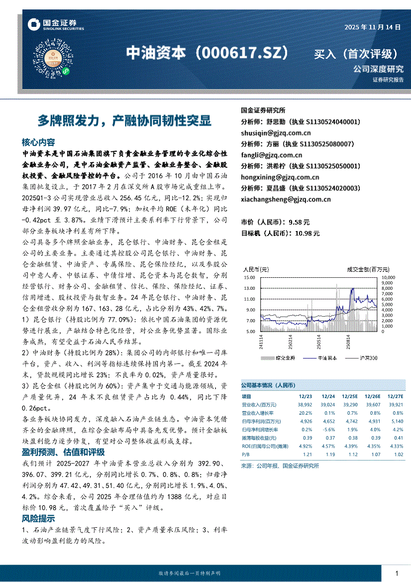 国金证券-中油资本-000617-多牌照发力,产融协同韧性突显-251114