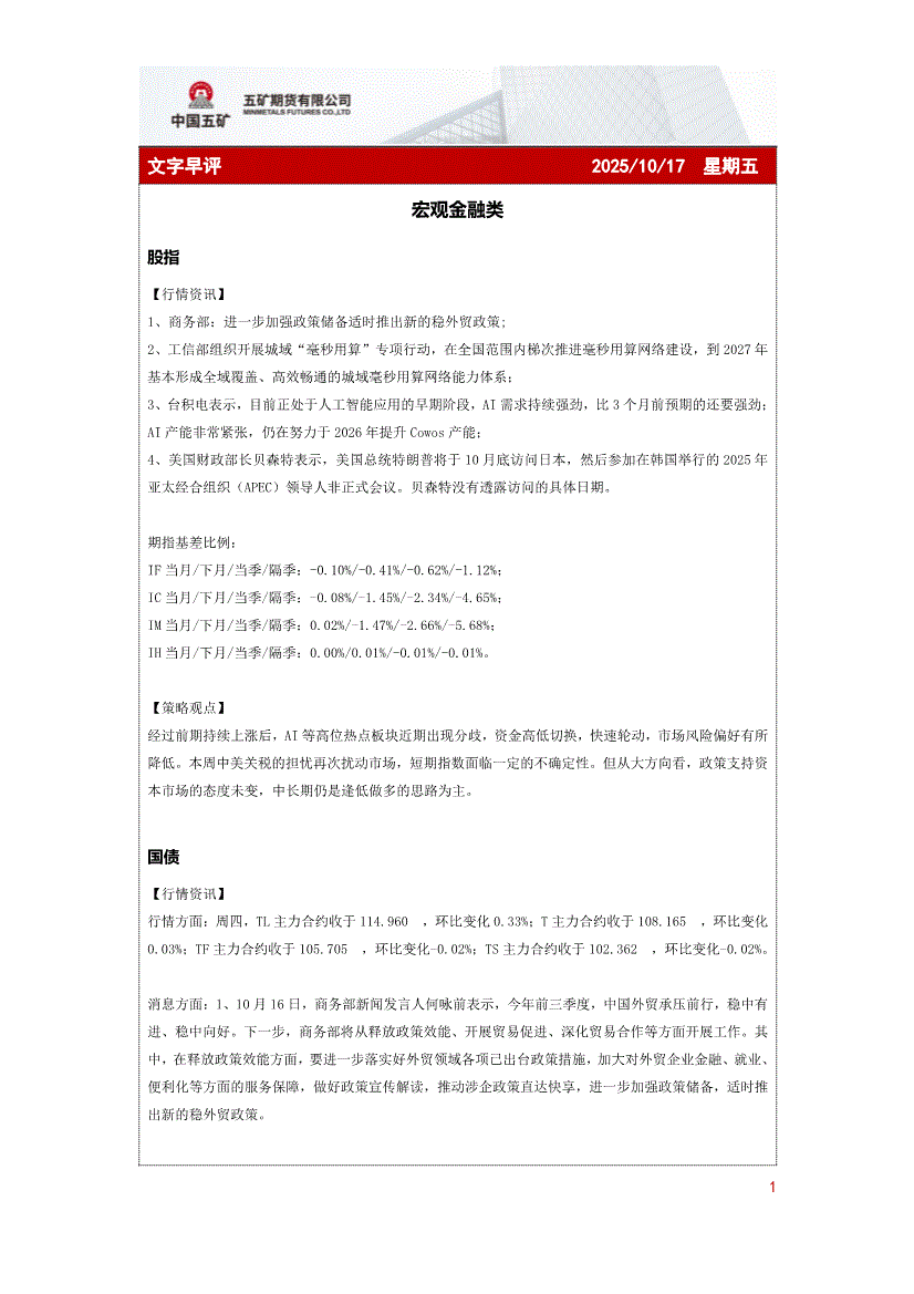 五矿期货-文字早评-251017