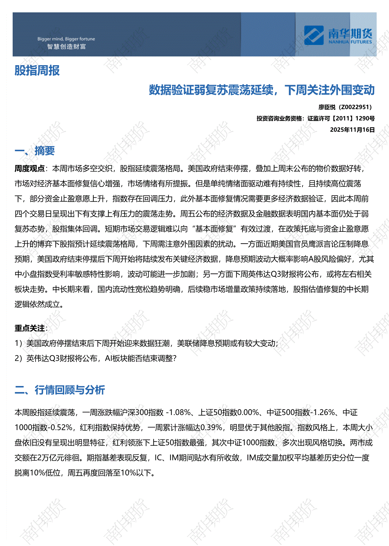 南华期货-股指周报:数据验证弱复苏震荡延续,下周关注外围变动-251116