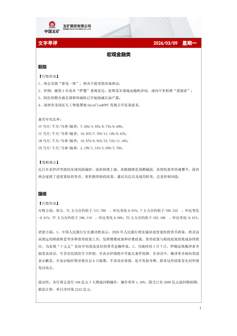 五矿期货-文字早评-260309
