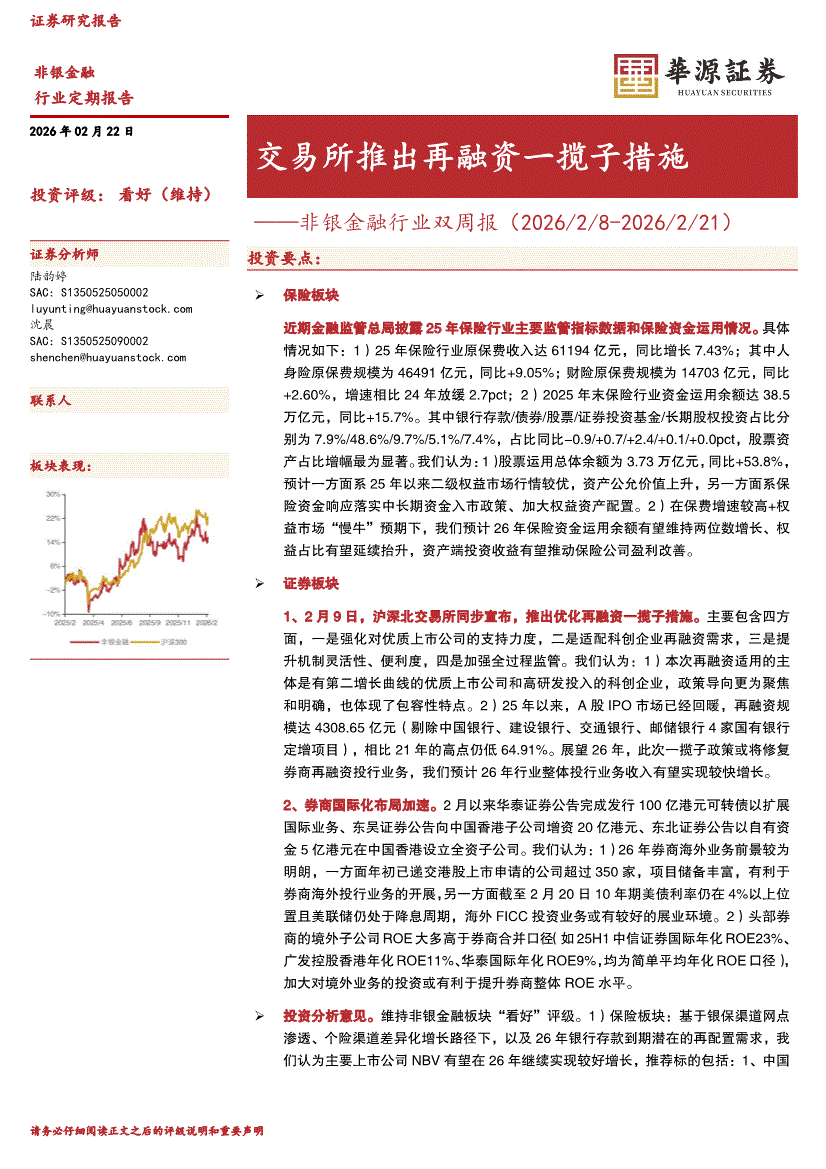 非银金融行业:华源证券-非银金融行业双周报:交易所推出再融资一揽子措施-260222