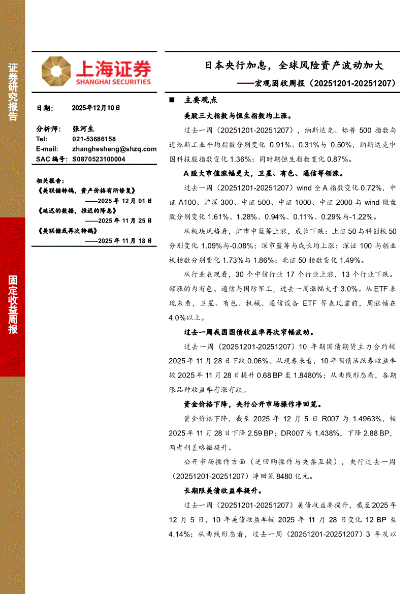 上海证券-宏观固收周报:日本央行加息,全球风险资产波动加大-251210