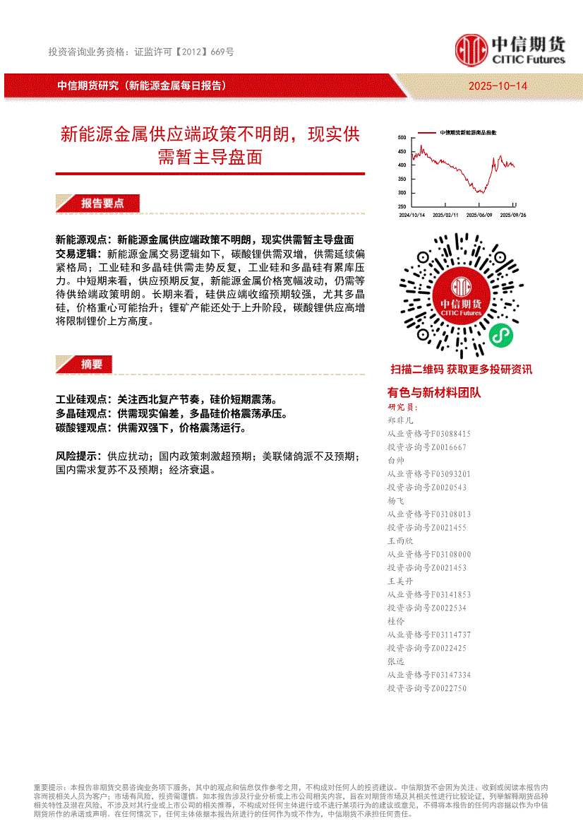 中信期货-新能源金属每日报告:新能源金属供应端政策不明朗,现实供需暂主导盘面-251014