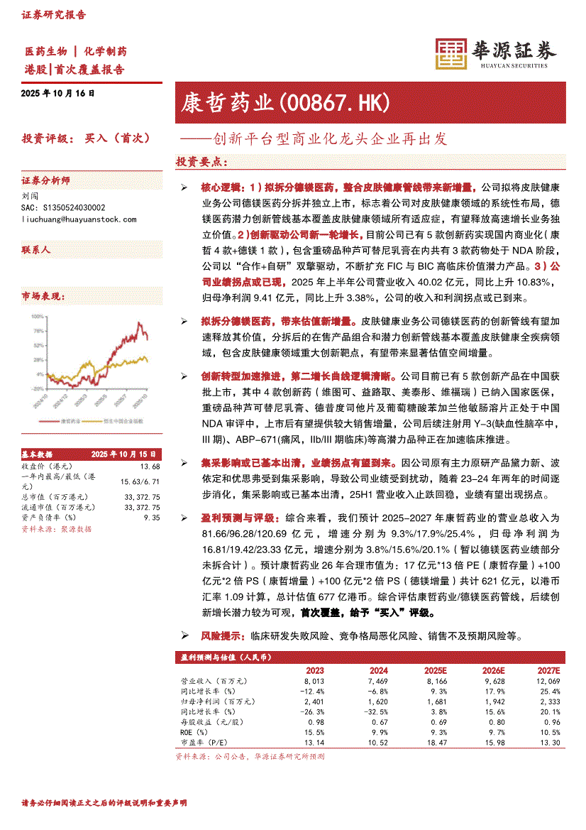 康哲药业:华源证券-康哲药业-0867.HK-创新平台型商业化龙头企业再出发-251016