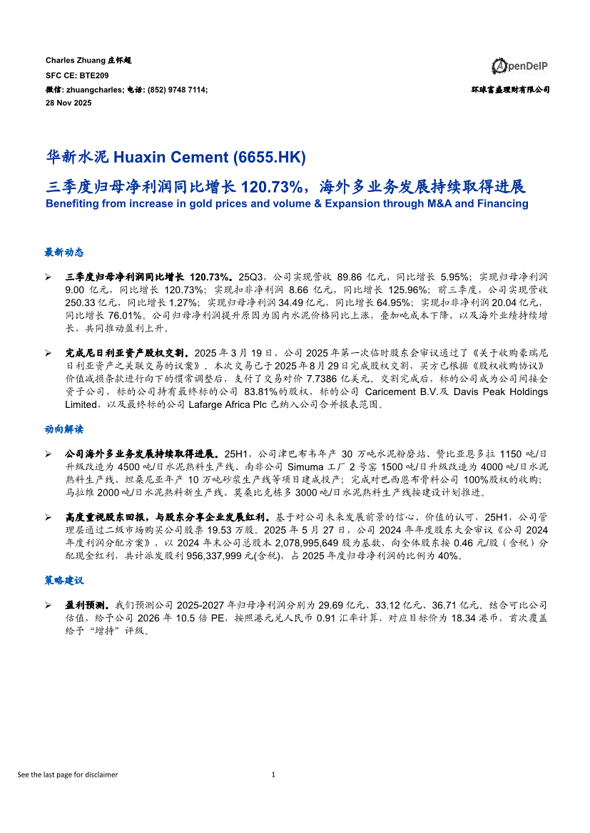 华新水泥:环球富盛-华新水泥-6655.HK-三季度归母净利润同比增长120.73%,海外多业务发展持续取得进展-251128