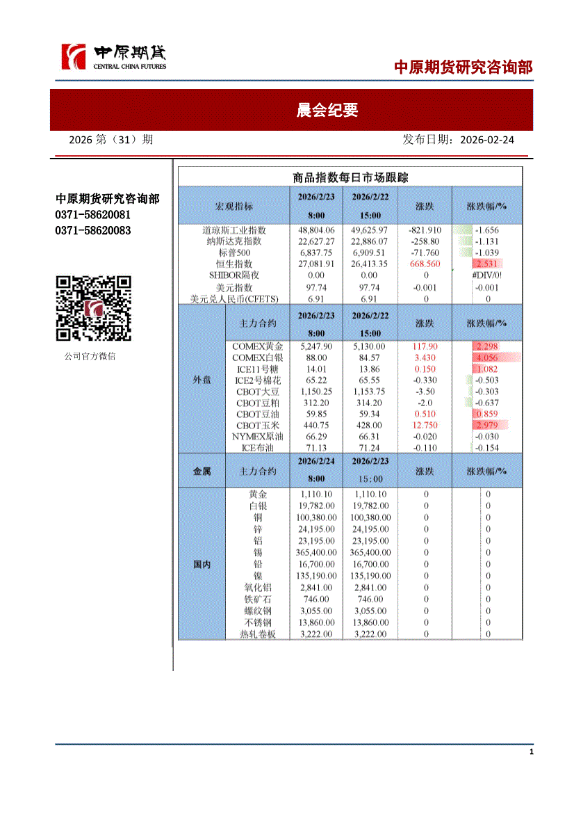 中原期货-晨会纪要-260224