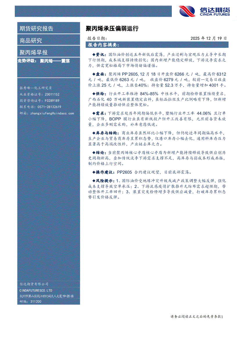 信达期货-聚丙烯早报:聚丙烯承压偏弱运行-251219