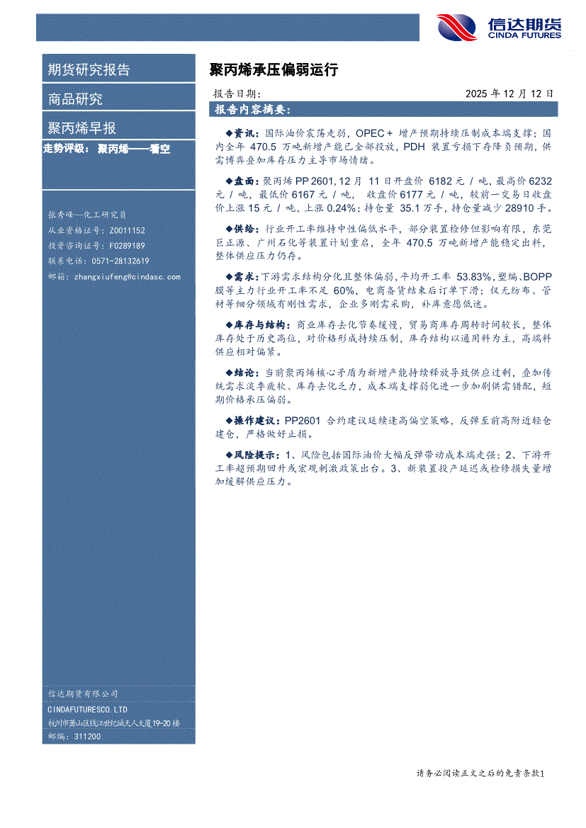 信达期货-聚丙烯早报:聚丙烯承压偏弱运行-251212