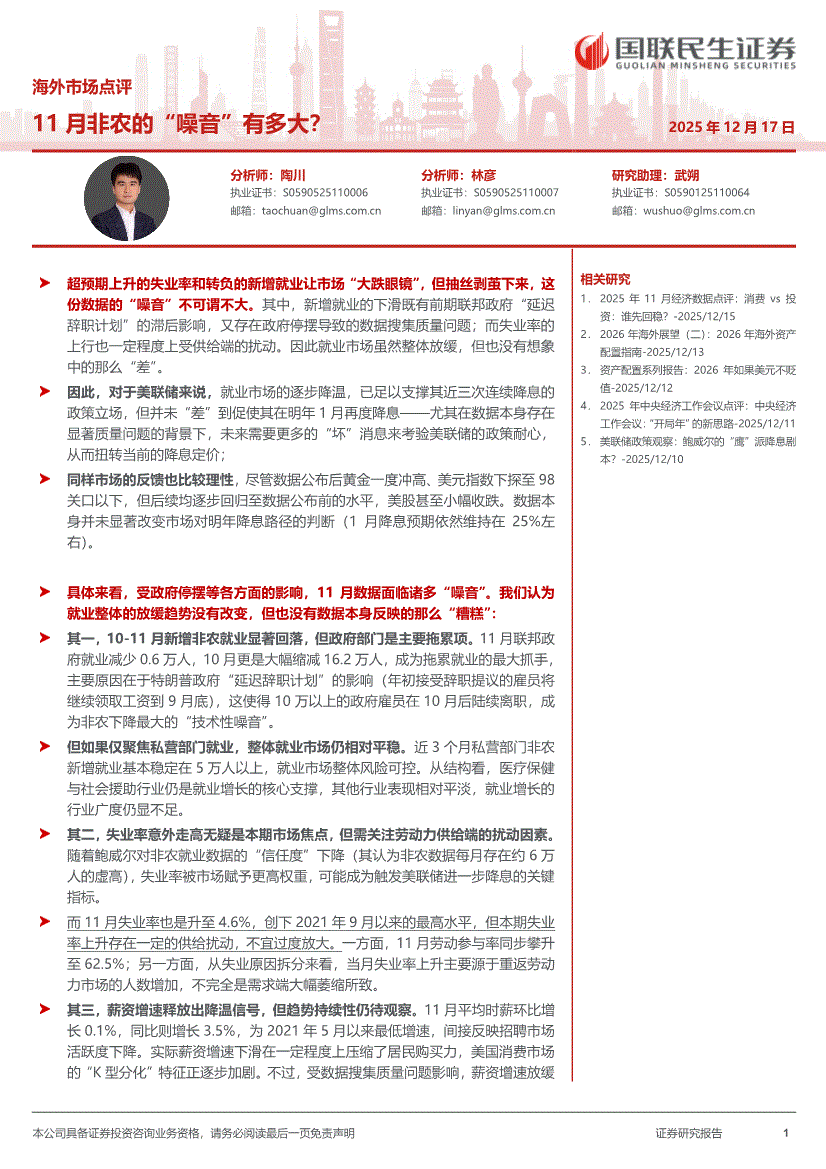 国联民生证券-海外市场点评:11月非农的“噪音”有多大?-251217