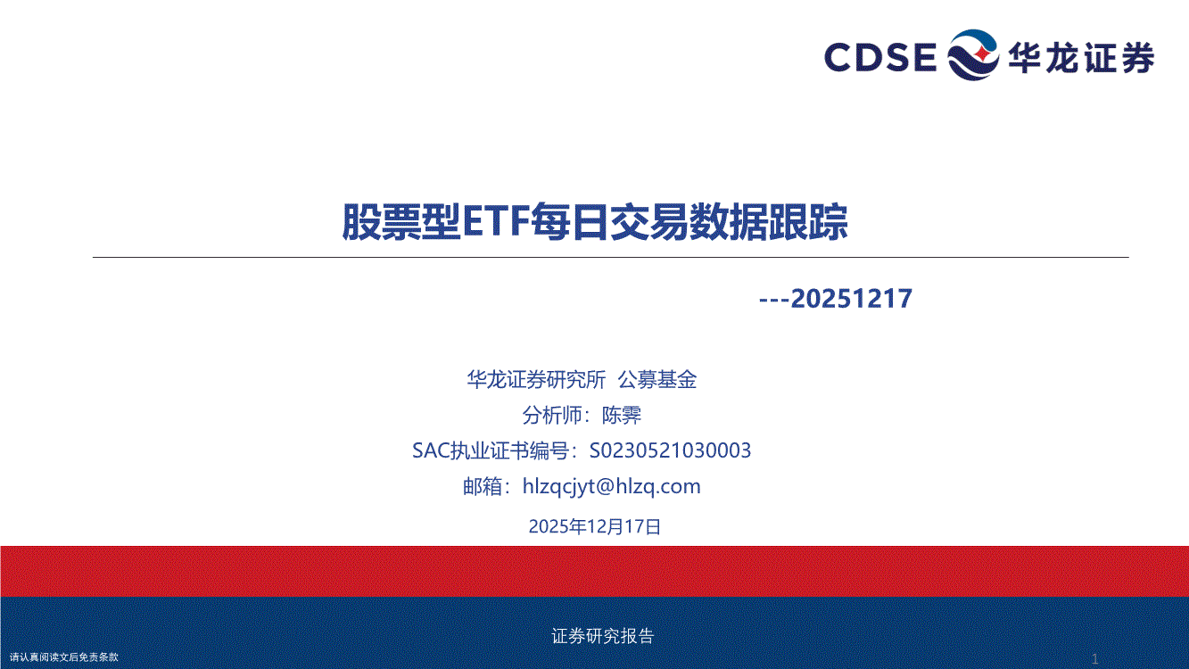 华龙证券-股票型ETF每日交易数据跟踪-251217