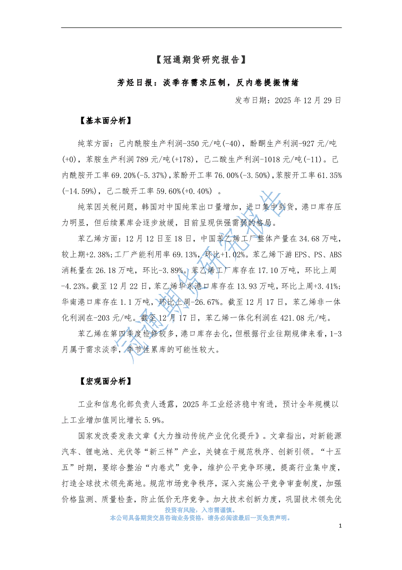 冠通期货-芳烃日报:淡季存需求压制,反内卷提振情绪-251229