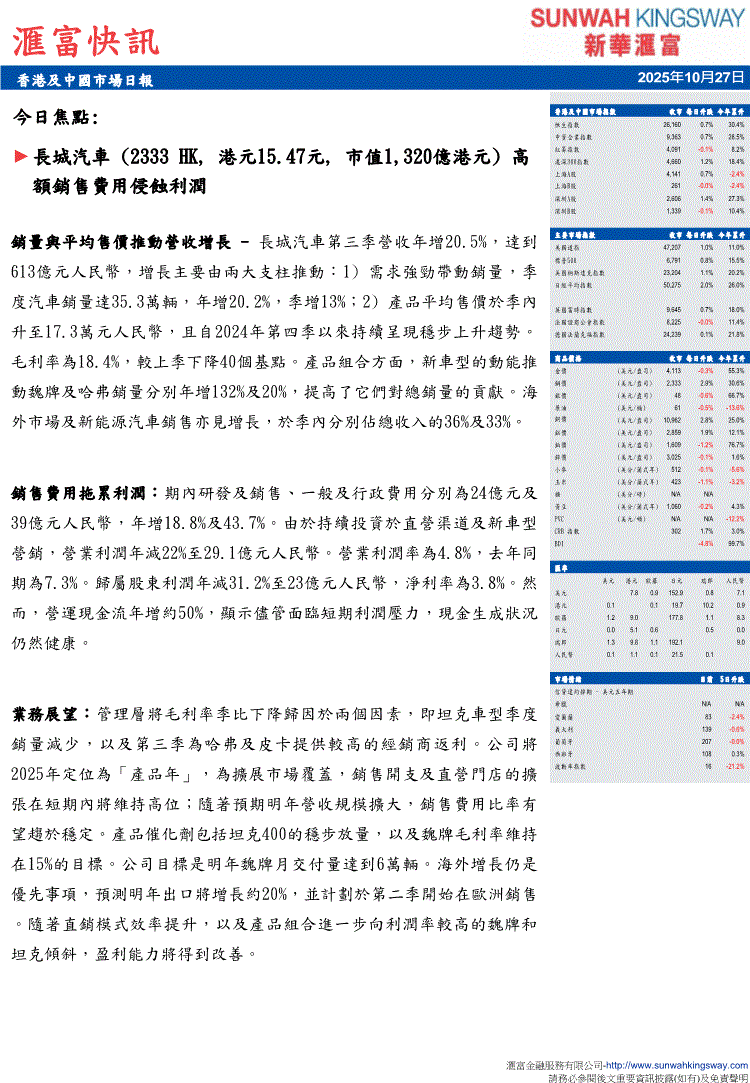 新华汇富-汇富快讯:香港及中国市场日报-251027