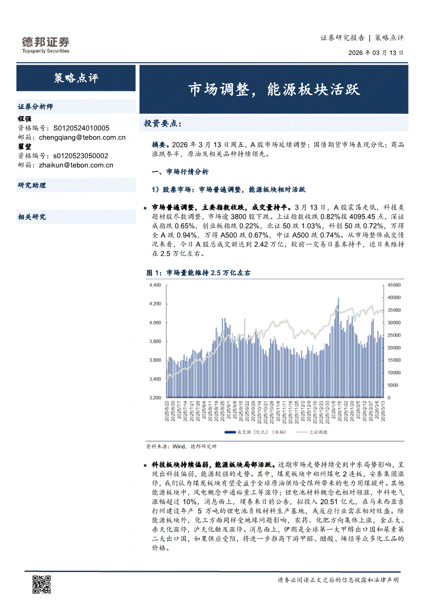 德邦证券-策略点评:市场调整,能源板块活跃-260313