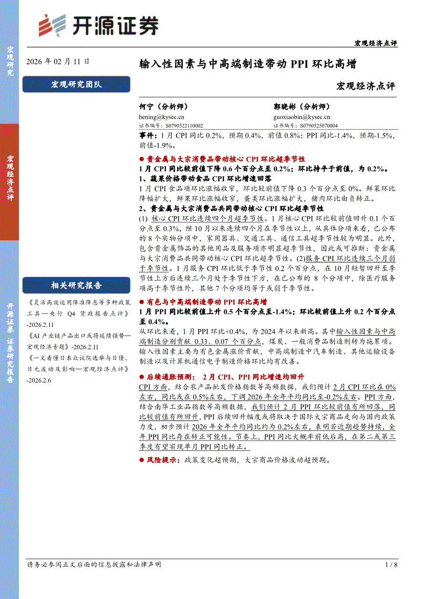 开源证券-宏观经济点评:输入性因素与中高端制造带动PPI环比高增-260211