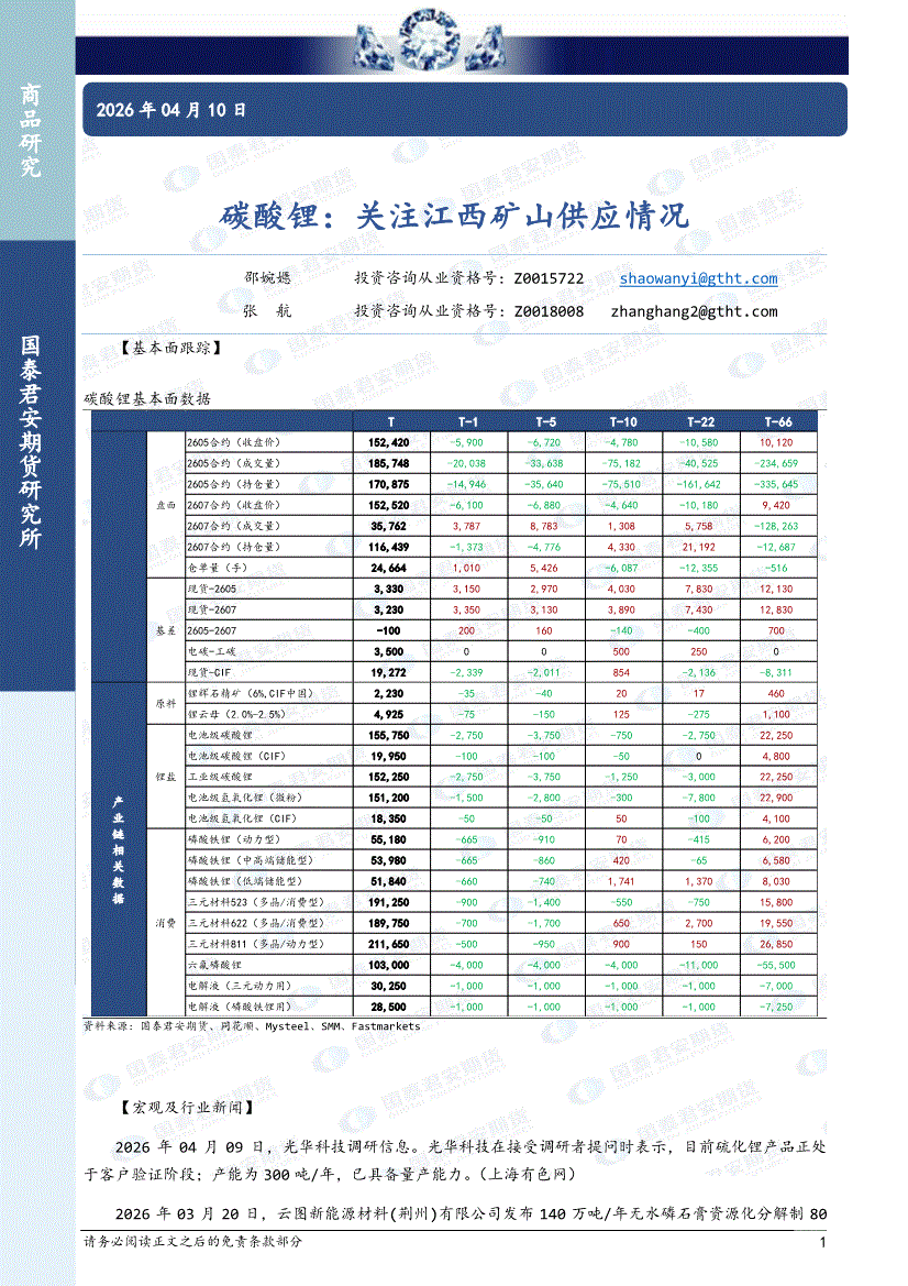 国泰君安期货-碳酸锂:关注江西矿山供应情况-260410