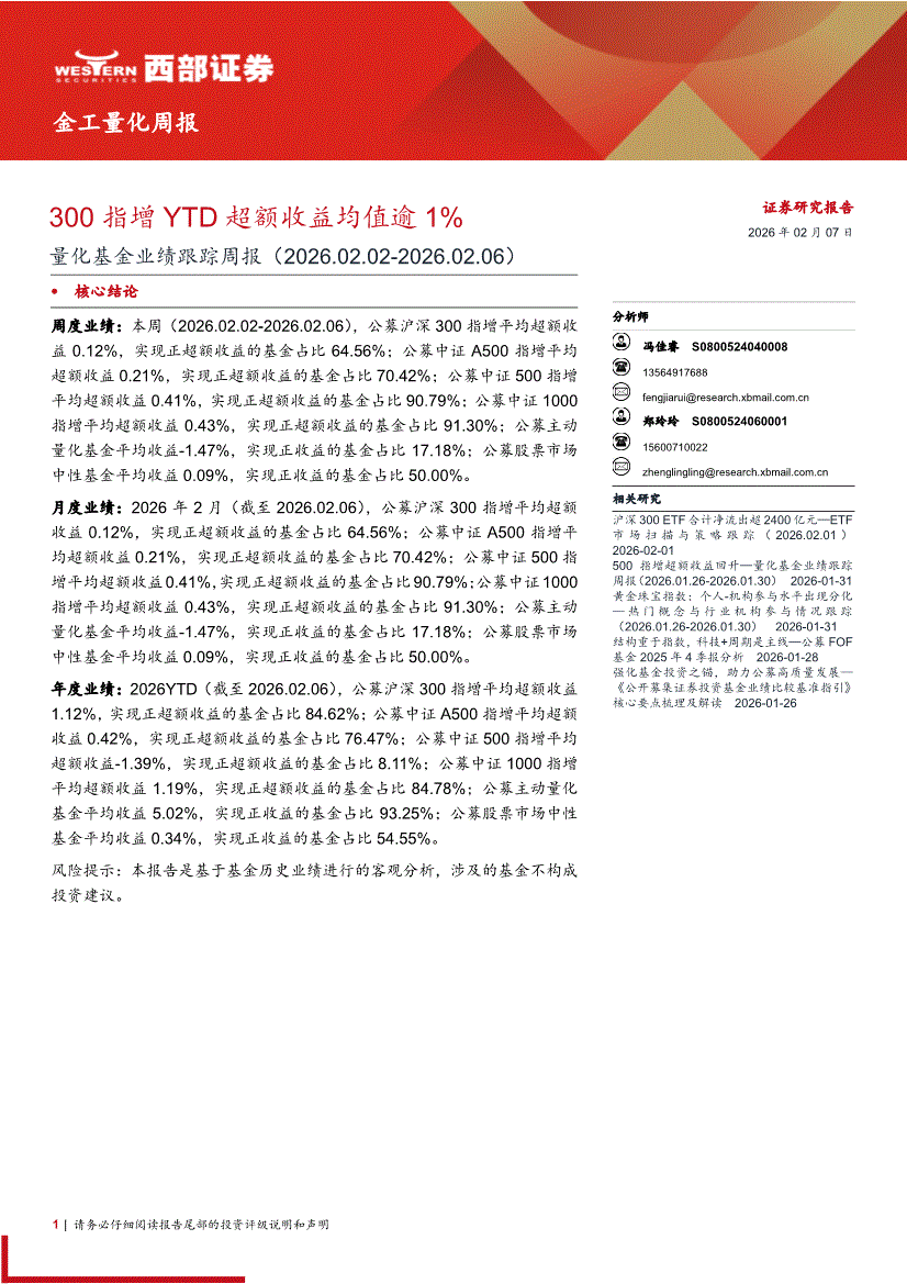 西部证券-量化基金业绩跟踪周报:300指增YTD超额收益均值逾1%-260207