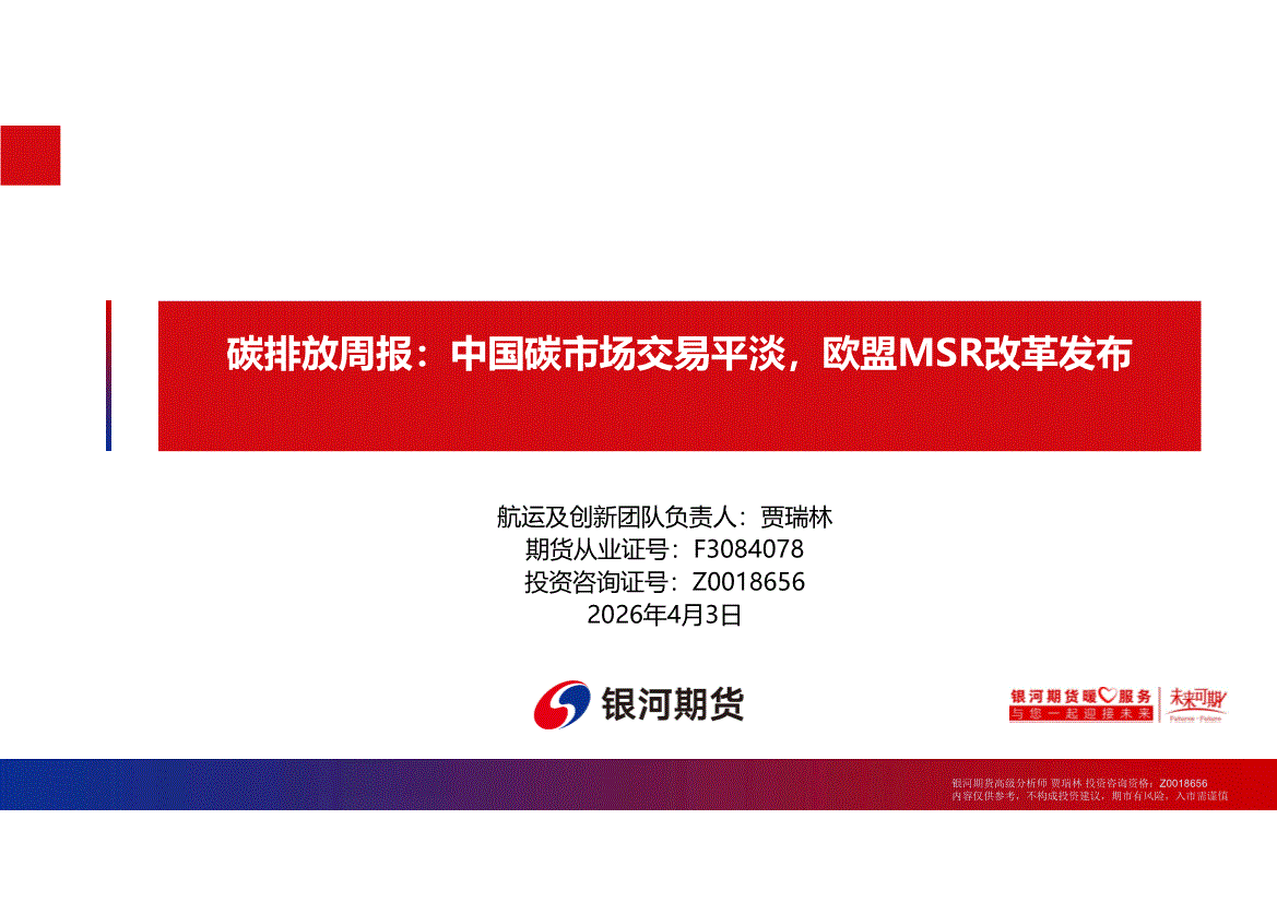 银河期货-碳排放周报:中国碳市场交易平淡,欧盟MSR改革发布-260403