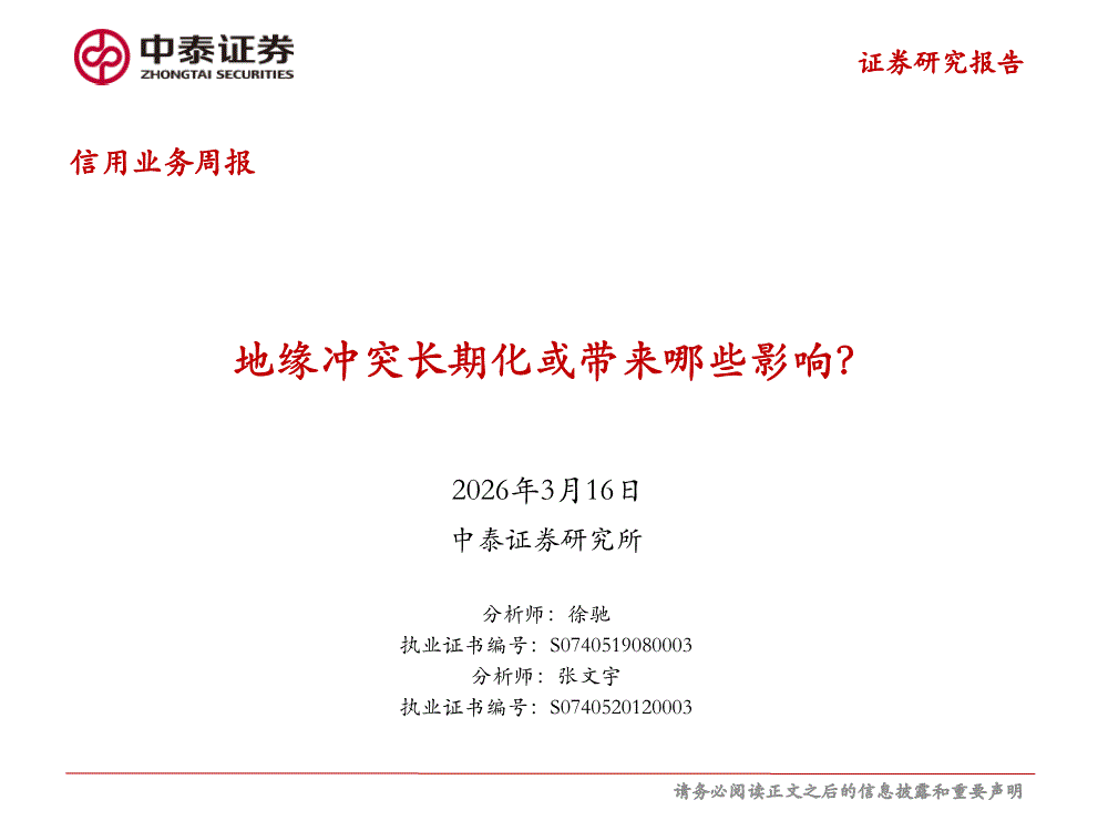 中泰证券-信用业务周报:地缘冲突长期化或带来哪些影响?-260316