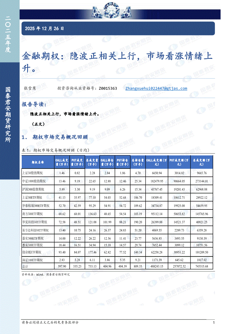 国泰君安期货-金融期权:隐波正相关上行,市场看涨情绪上升-251226