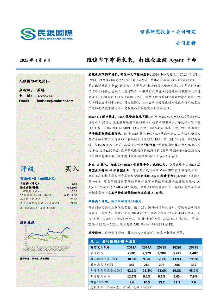 百融云~W:民银国际-百融云~W-6608.HK-维稳当下布局未来,打造企业级Agent平台-250409