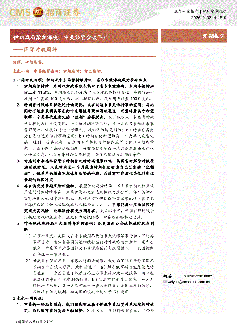 招商证券-国际时政周:伊朗战局聚焦海峡;中美经贸会谈再启-260315