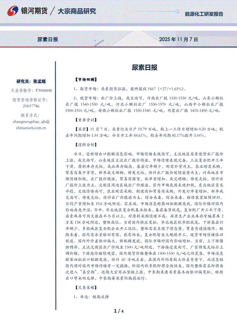 银河期货-尿素月报:出口窗口关闭,尿素震荡偏弱-251102
