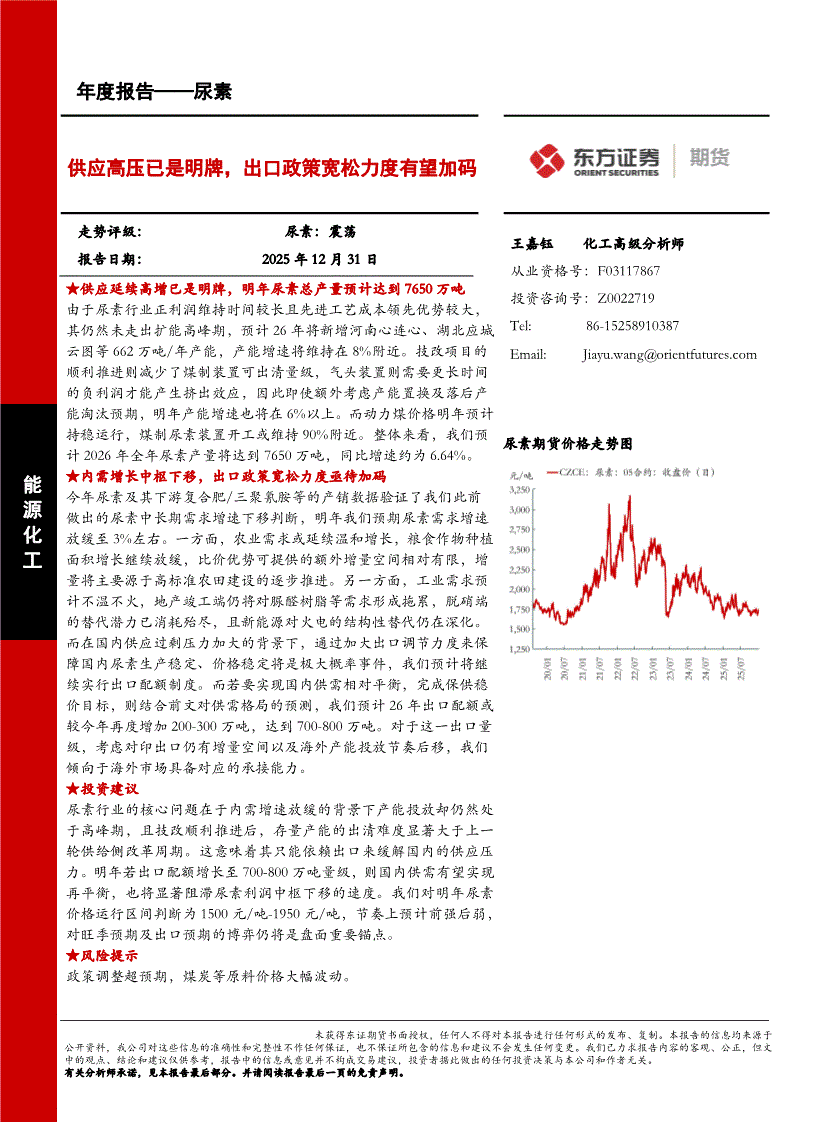 东证期货-尿素年度报告:供应高压已是明牌,出口政策宽松力度有望加码-251231