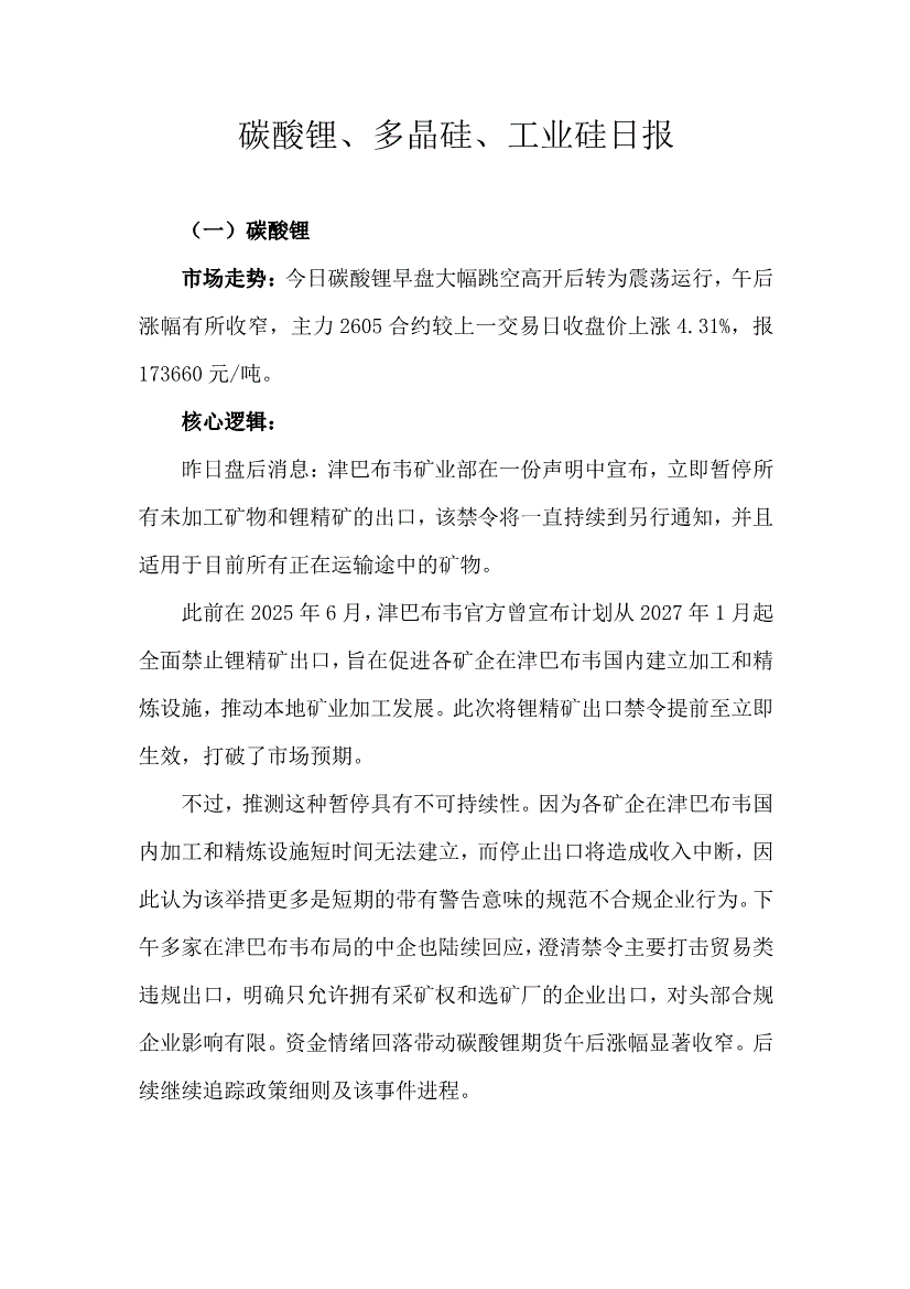 天富期货-碳酸锂、多晶硅、工业硅日报-260203