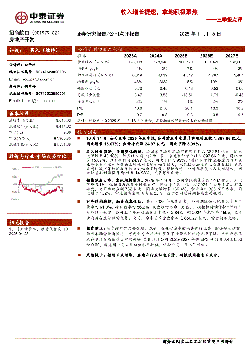 招商蛇口:中泰证券-招商蛇口-001979-三季报点评:收入增长提速,拿地积极聚焦-251116
