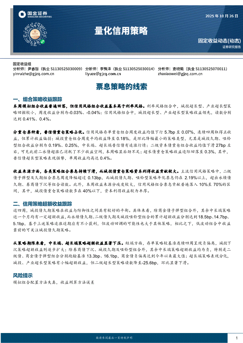 国金证券-信用策略备忘录:追涨与防御的平衡-251024