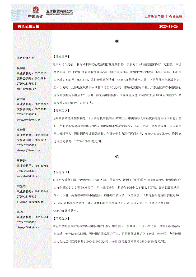 五矿期货-有色金属日报-251126