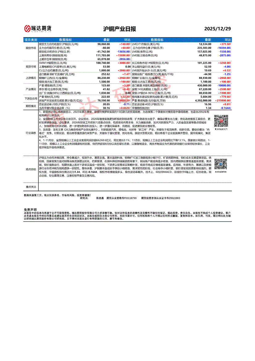 瑞达期货-沪铜市场周报:供给收敛需求韧性,沪铜或将震荡运行-251226