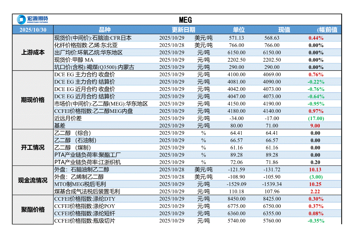 宏源期货-MEG早评-251030