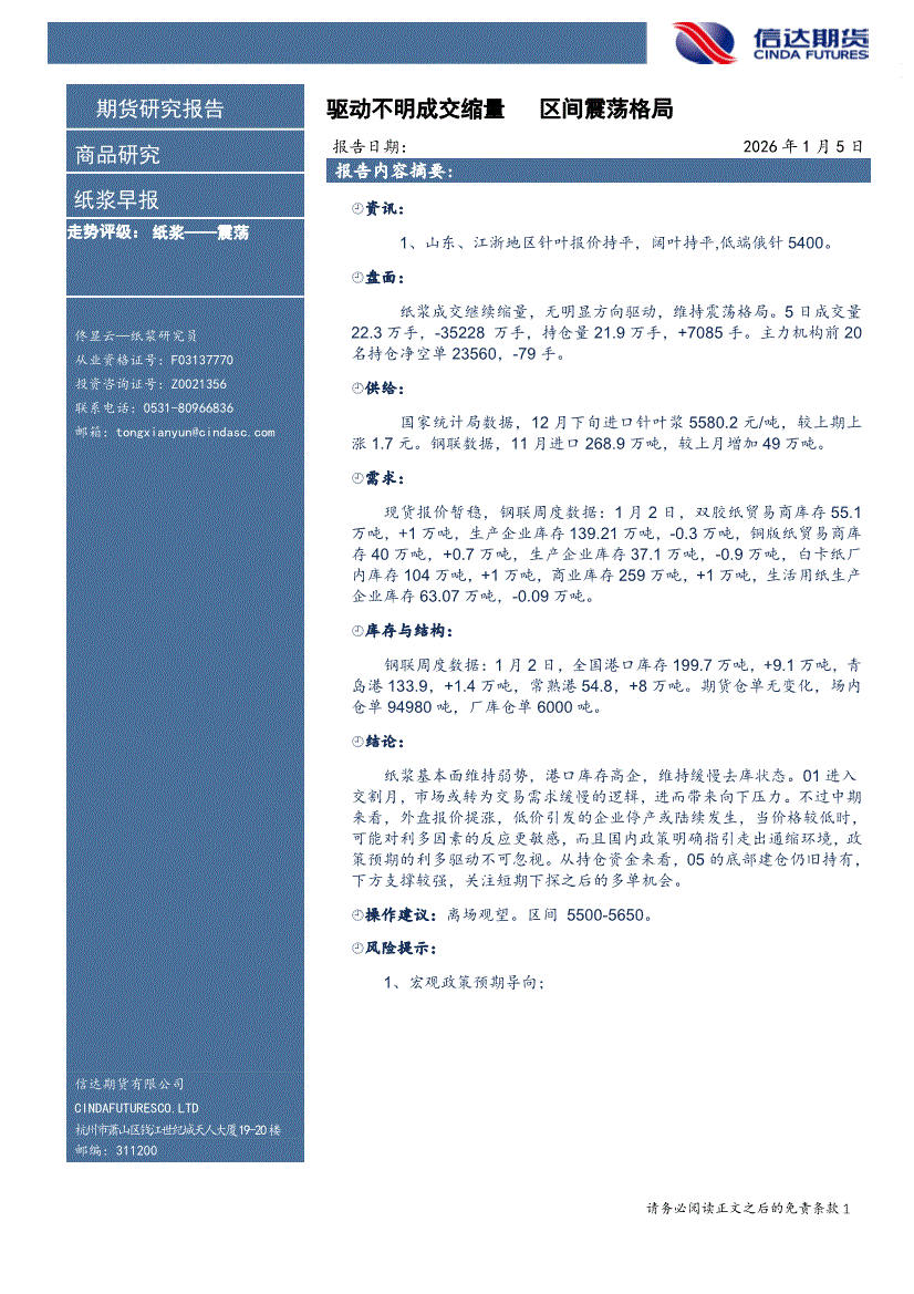 信达期货-纸浆早报:窄幅震荡,企稳试多-260119