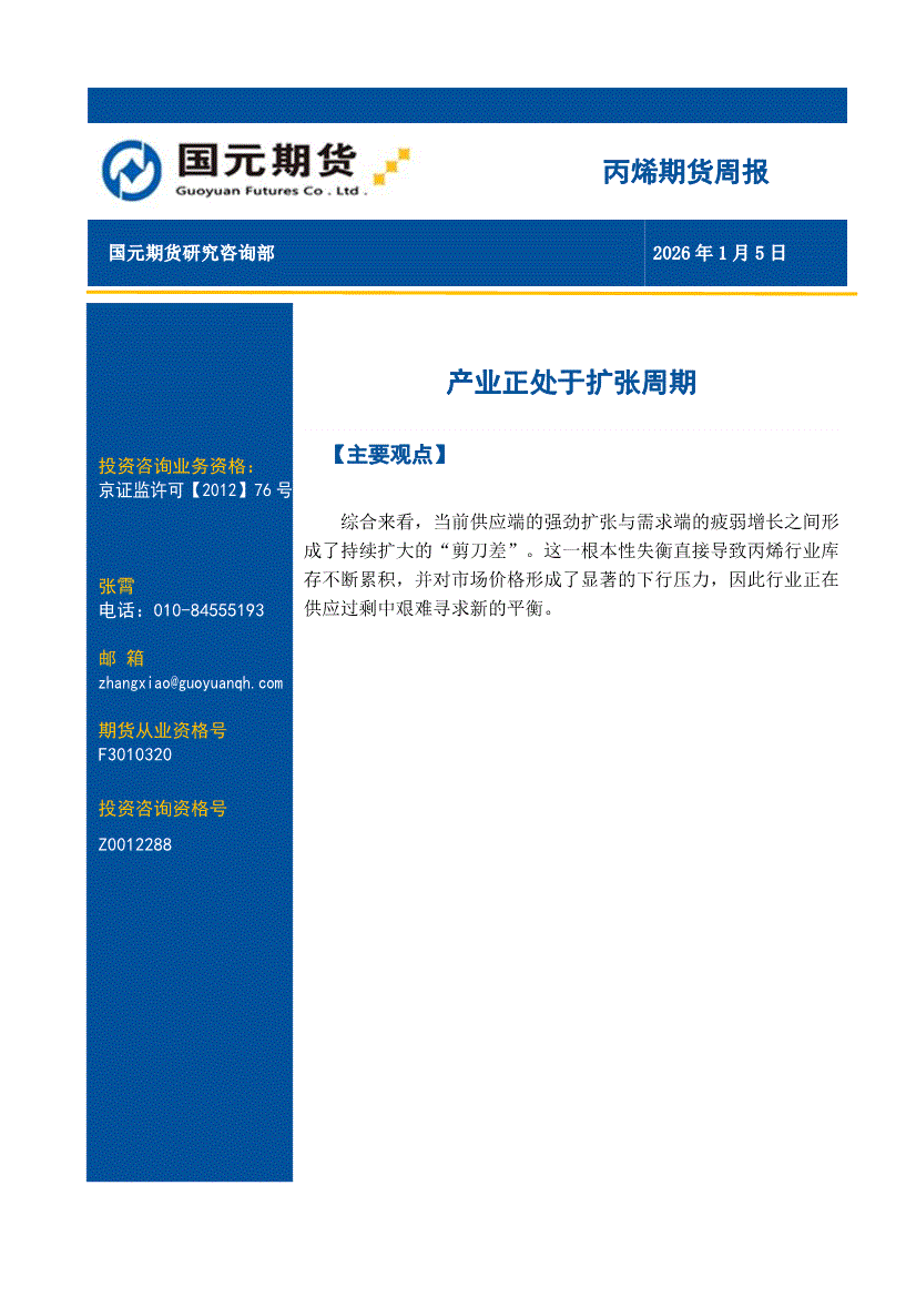国元期货-丙烯期货周报:产业正处于扩张周期-260105