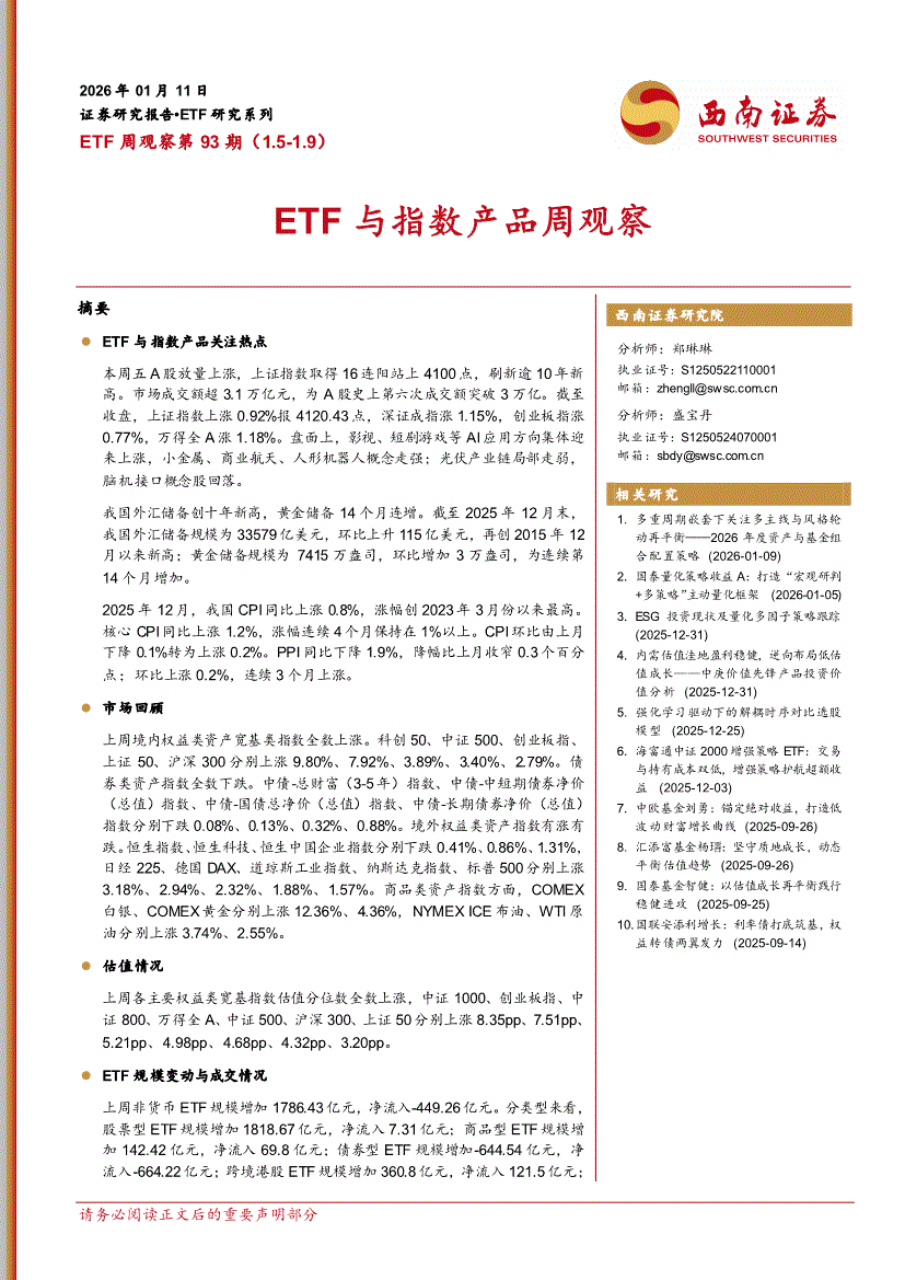 西南证券-ETF周观察第93期:ETF与指数产品周观察-260111