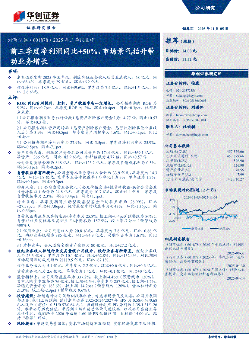 浙商证券:华创证券-浙商证券-601878-2025年三季报点评:三季度净利润同比+50%,市场景气抬升带动业务增长-251105