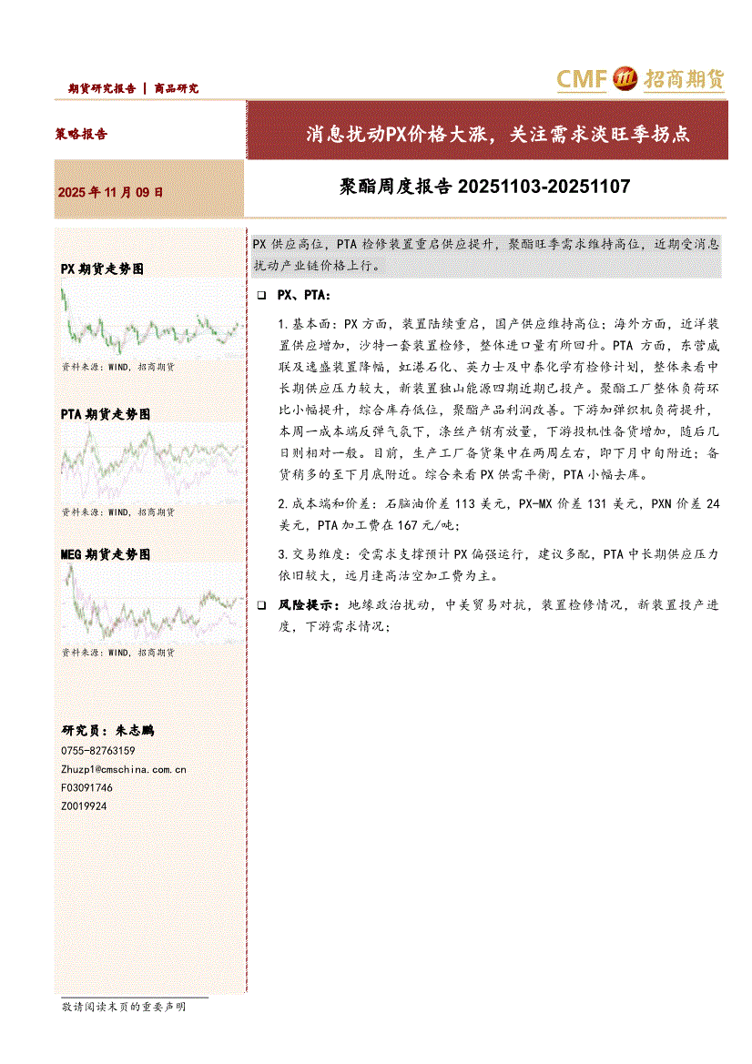 招商期货-聚酯周度报告:消息扰动PX价格大涨,关注需求淡旺季拐点-251109