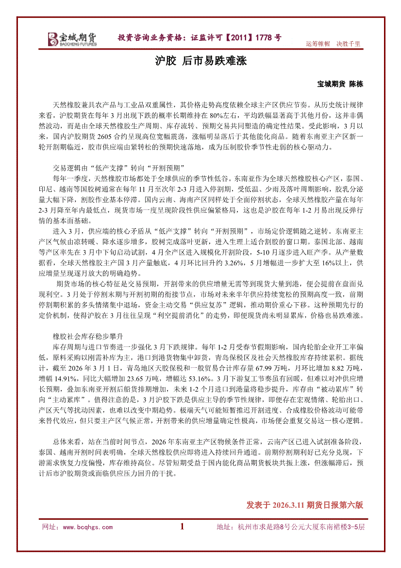 宝城期货-橡胶甲醇原油日报:地缘因素扰动,能化震荡偏强-260313