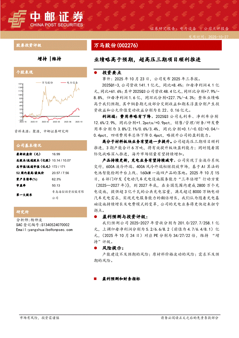 万马股份:中邮证券-万马股份-002276-业绩略高于预期,超高压三期项目顺利推进-251027