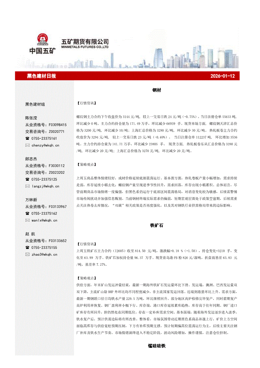 五矿期货-黑色建材日报-260112