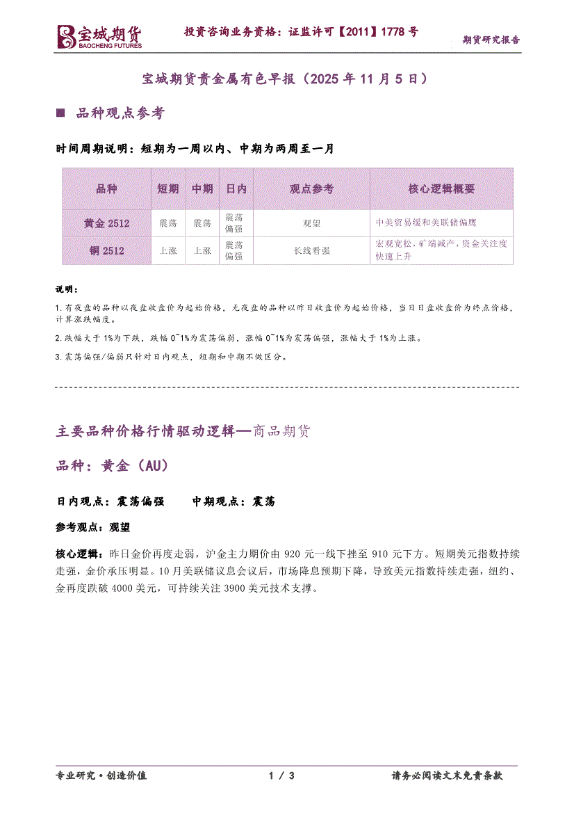宝城期货-黄金月报:地缘政治缓和,金价冲高回落-251029