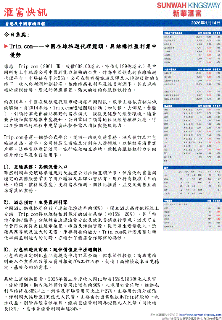 新华汇富-汇富快讯:香港及中国市场日报-260114