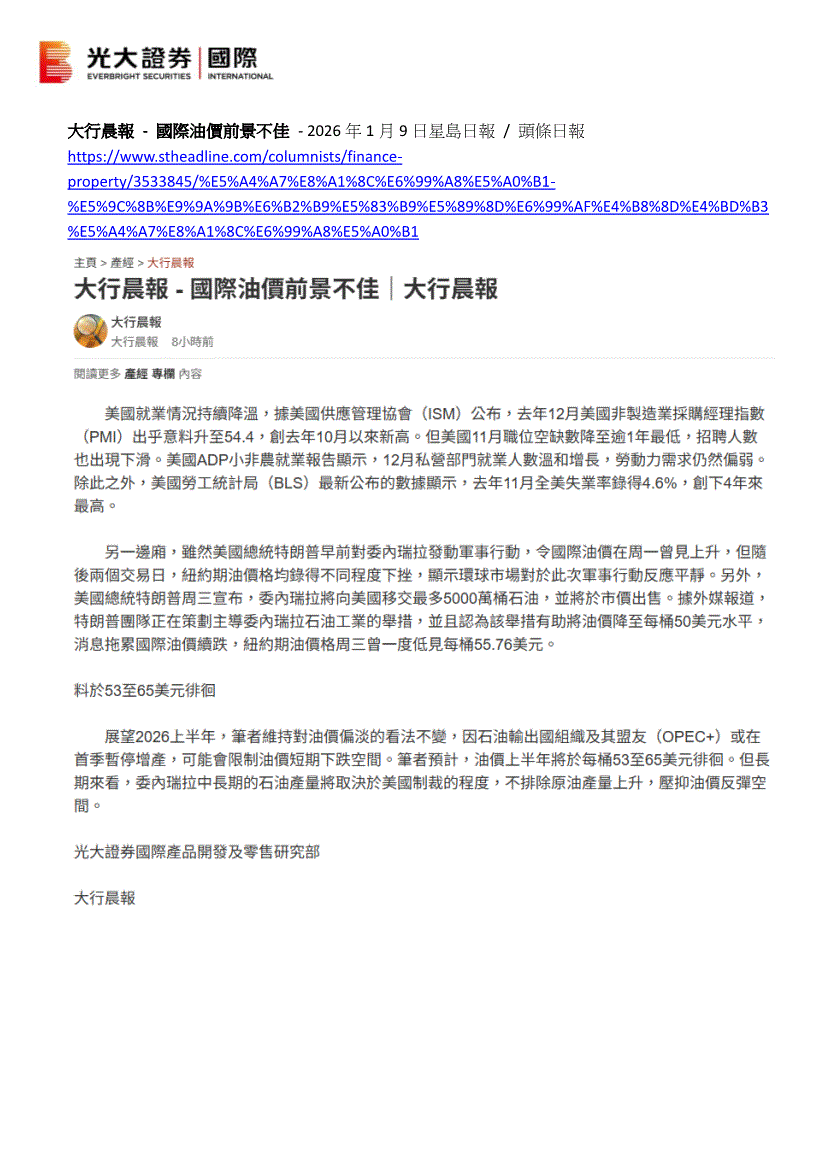 光大证券(国际)-大行晨报:国际油价前景不佳-260109
