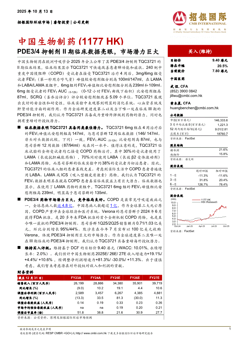 中国生物制药:招银国际-中国生物制药-1177.HK-PDE3/4抑制剂II期临床数据亮眼,市场潜力巨大-251013