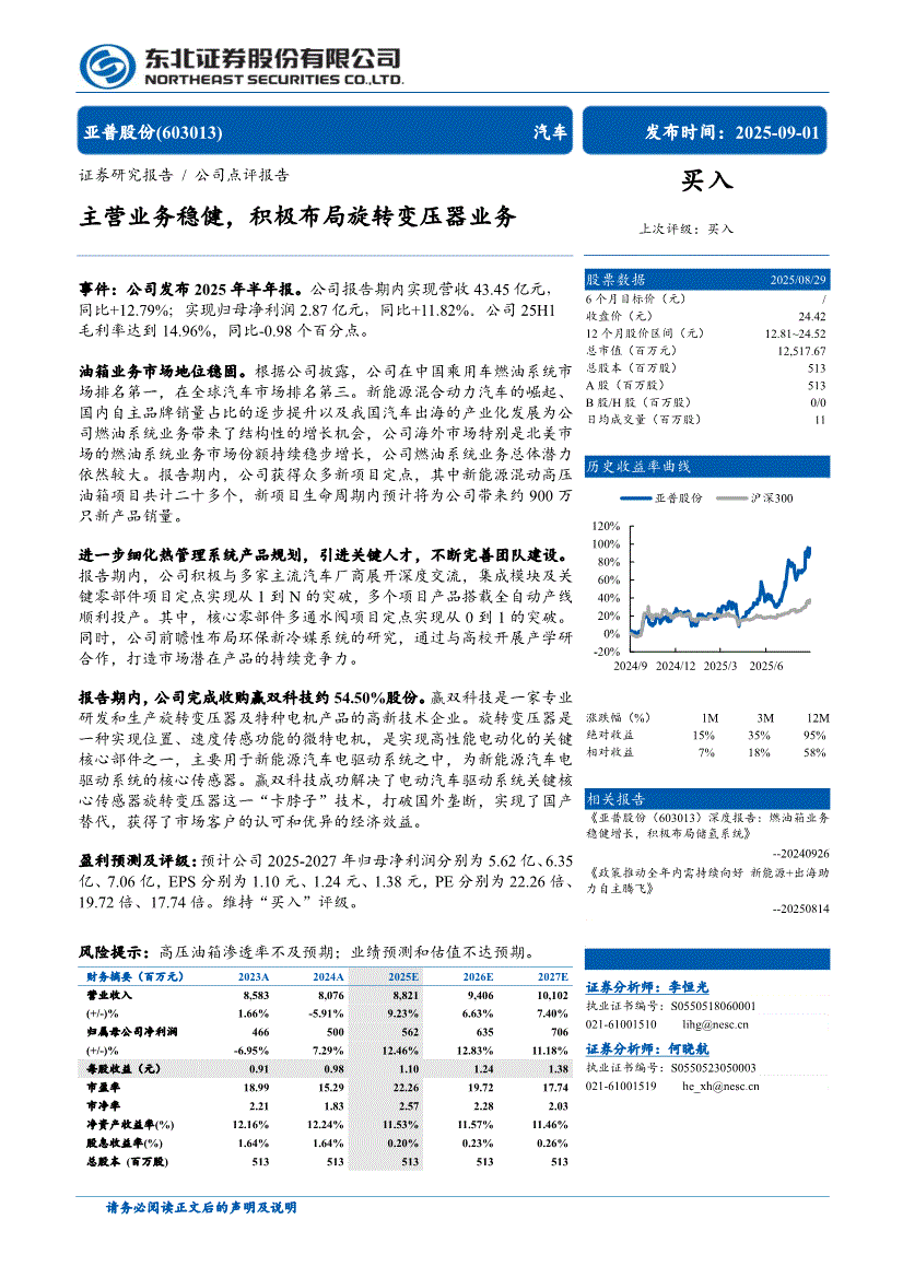 亚普股份:东北证券-亚普股份-603013-主营业务稳健,积极布局旋转变压器业务-250901