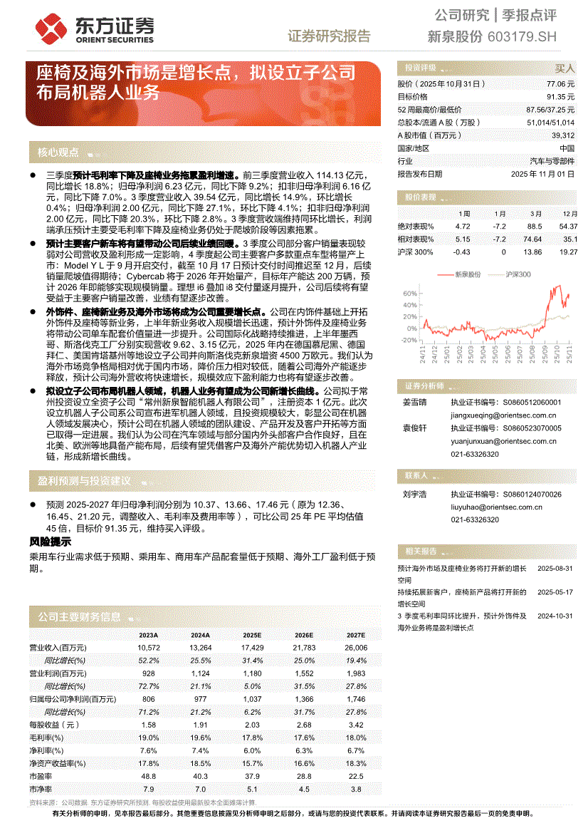 新泉股份:东方证券-新泉股份-603179-座椅及海外市场是增长点,拟设立子公司布局机器人业务-251101